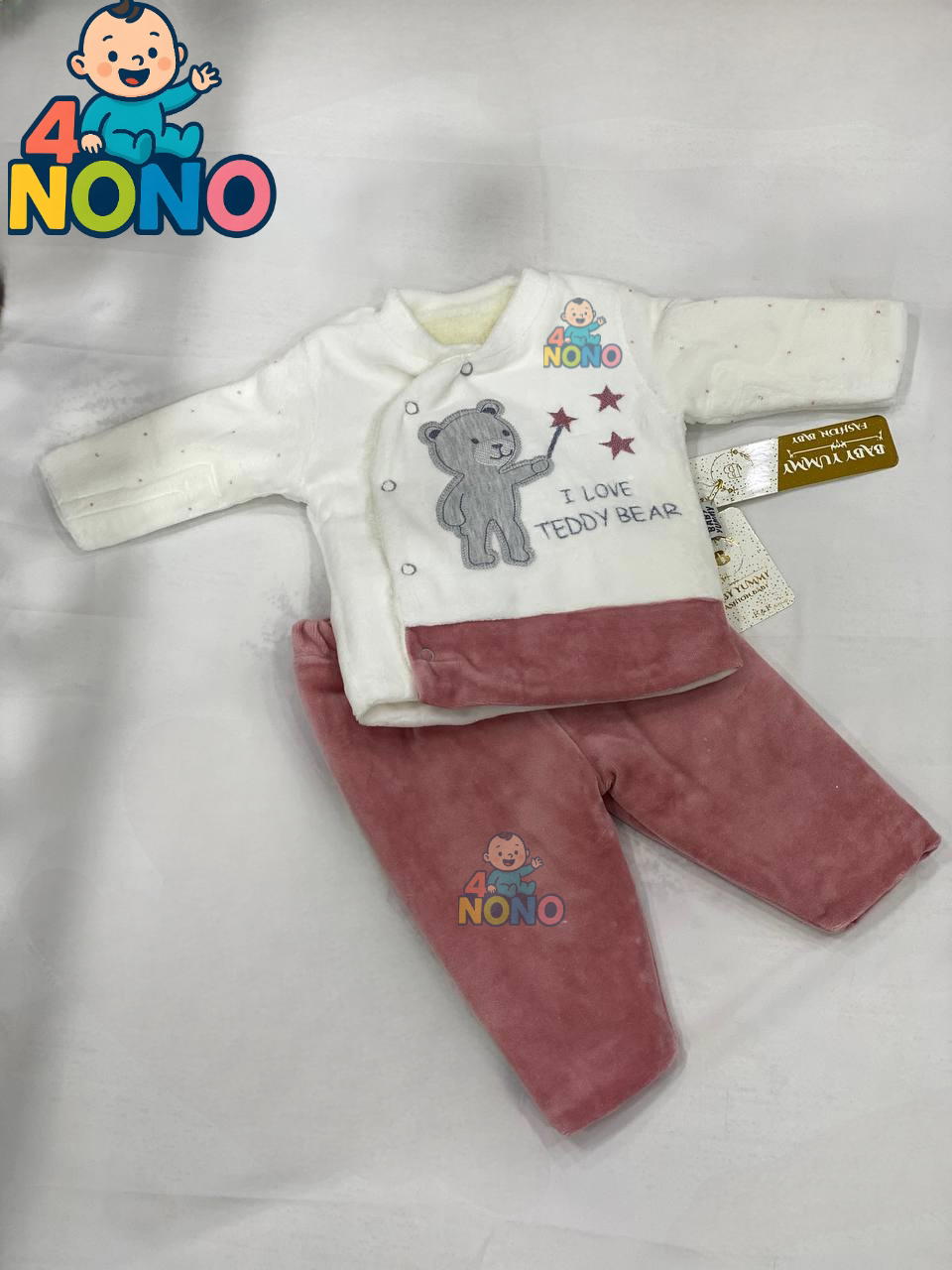 بيجامة مبطنة فرو اطفال مواليد قطعتين قطيفة شتوى